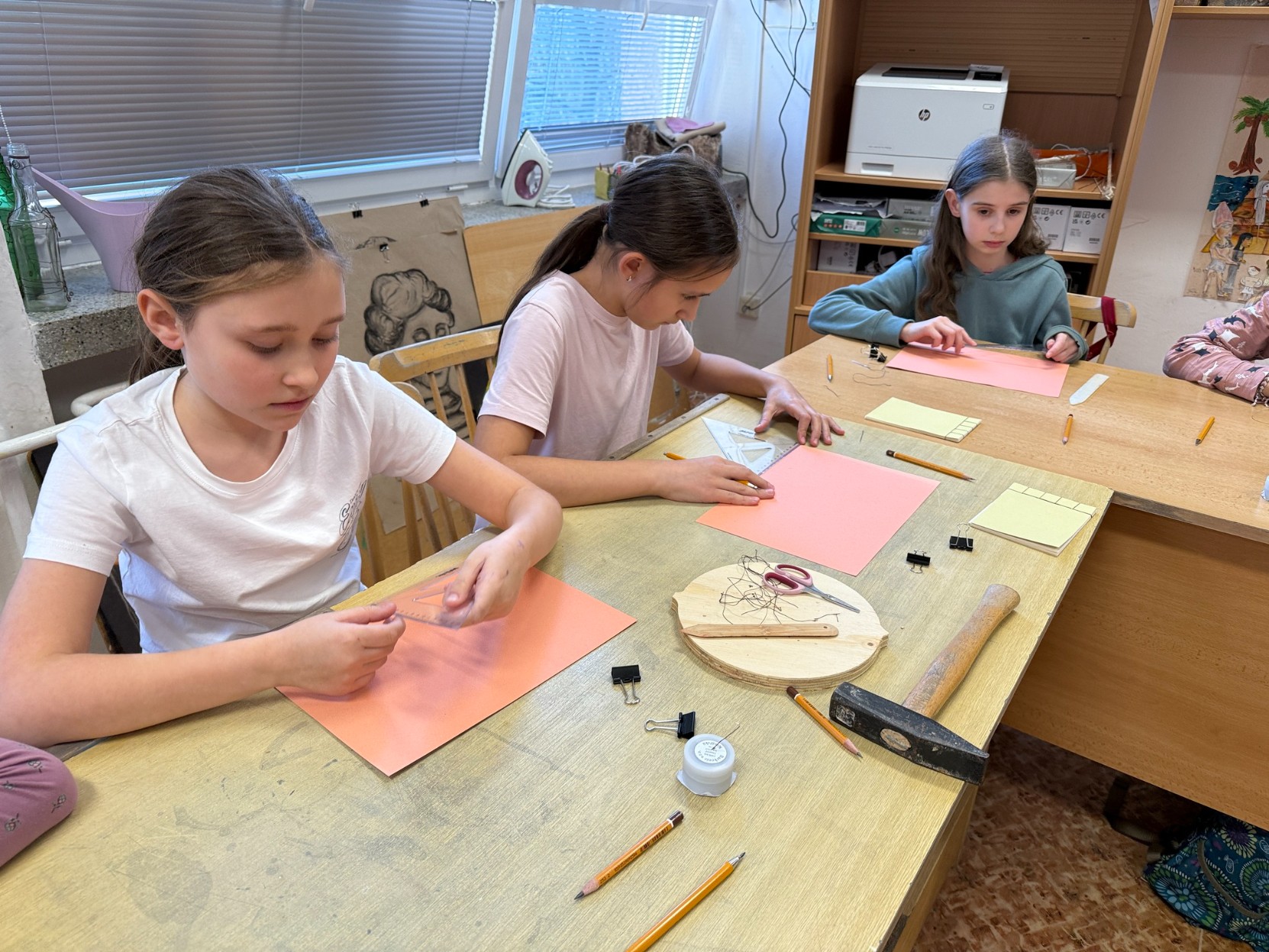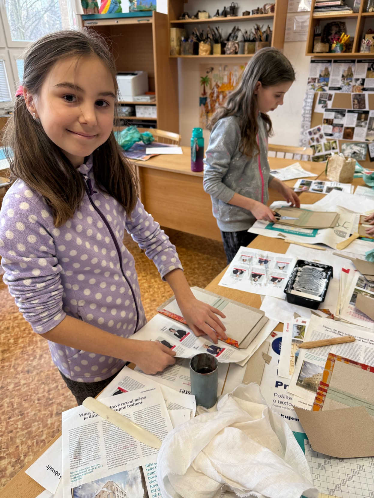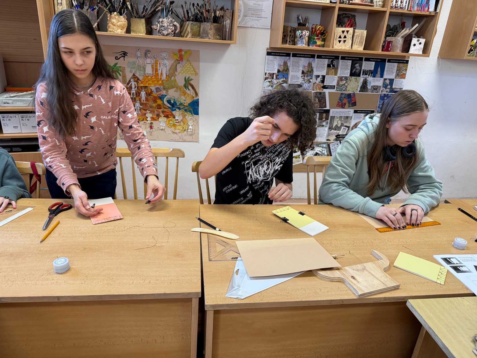 V pátek 6. března se děti z výtvarného oboru věnovaly netradiční výtvarné aktivitě – učily se šít různé druhy knižních vazeb. Během programu si také prohlédly ukázky autorských knih a seznámily se s jejich podobami i možnostmi zpracování. Celá dílna probíhala pod vedením Mgr. Sibinské.